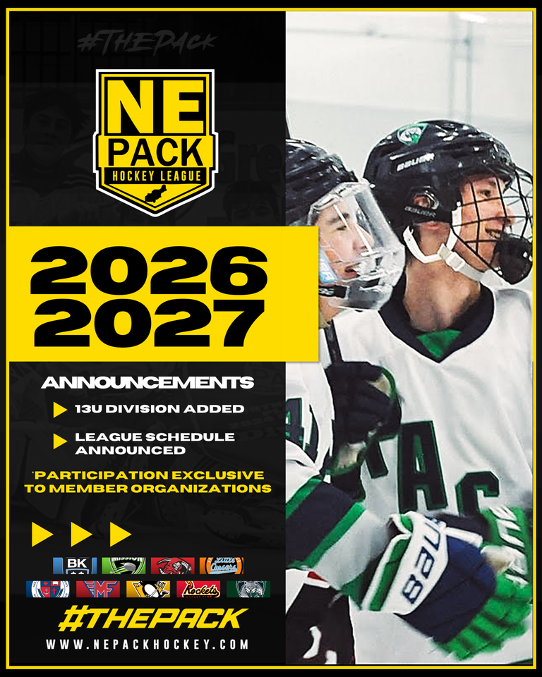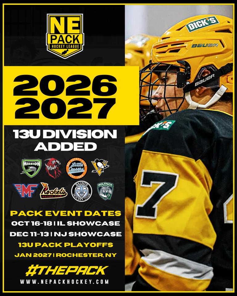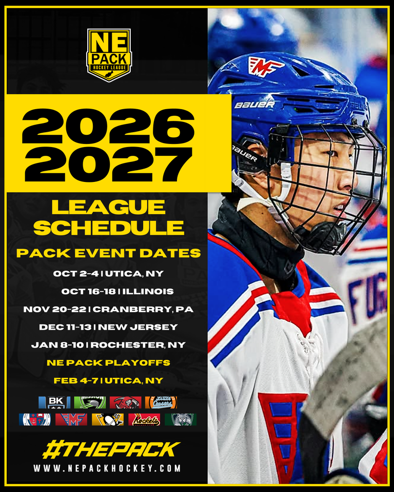 NewsNE Pack Playoff Weekend ~ All-Pack TeamsOur 2026 Northeast Pack Hockey League Champions ~ 14U-18U!Northeast Pack Hockey League ~ 2026-27 Schedule & 13U Division Added!Northeast Pack Hockey League Bishop Kearney Selects Showcase Recap ~ 14U-18UNortheast Pack NJ Showcase ~ Top Players, Goalies & League Standings ~ 13U-18U TeamsPittsburgh Penguins Elite NE Pack Showcase Recap ~ 14U-18U DivisionsLeague Expansion Welcomes Chicago Mission & Reapers Hockey Association in 2026-2027!35 Northeast Pack Hockey League Alumni on the 25-26 NHL Central Scouting Watch List!2025 Fromen Injury Law Showcase ScheduleMount St. Charles Alumni Jaden Sikura & Cam Wilson Announce Commitments