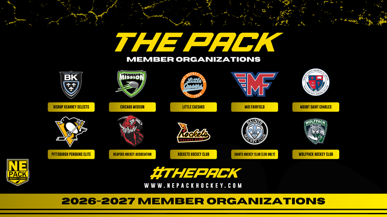 The Northeast Pack Hockey League is made up of nine youth hockey organizations from the Northeast and the Midwest for the 2026-2027 season. The league was founded at the beginning of the 2019-2020 season. All of our elite organizations share a vision for player-focused development and are consistently some of the top youth hockey organizations in the country. All of the organizations in the Northeast Pack Hockey League have had success in player advancement. Players have advanced to the USHL, OHL, Tier 1 Junior Hockey, NCAA and professional hockey. The Northeast Pack Hockey League is very proud of the NHL Draft Picks from our member organizations as well as the National Championships that have been won. Our league (14U-18U) consists of 6 events throughout the hockey season and concludes with the league playoffs in February that is held at the Utica University Nexus Center in Utica, NY. The league has had at least one team win a USA Hockey National Championship since 2019 when the league was founded. New for 26-27, is the addition of the 13U (2013) age level which will have 8 teams and will compete for a league championship over the course of three events.