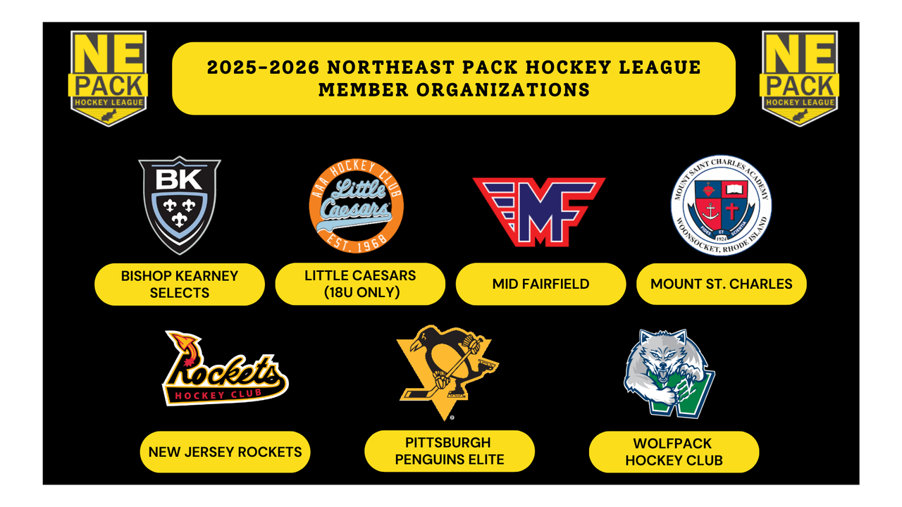 The Northeast Pack Hockey League is made up of six youth hockey organizations from the Northeast and Little Caesars from the Midwest who is now a full time member at the 18U age level for the 25-26 season. The league was founded at the beginning of the 2019-2020 season. These seven prominent organizations share a vision for player-focused development and are consistently some of the top youth hockey organizations in the country. All of the organizations in the Northeast Pack Hockey League have had success in player advancement. Players have advanced to the USHL, OHL, Tier 1 Junior Hockey, NCAA and professional hockey. The Northeast Pack Hockey League is very proud of the NHL Draft Picks from our member organizations as well as the National Championships that have been won. Our league consists of 6 events throughout the hockey season that take place in the Northeast and concludes with the league playoffs in February that is held at the Utica University Nexus Center in Utica, NY. The league has had at least one team win a USA Hockey National Championship since 2019 when the league was founded.