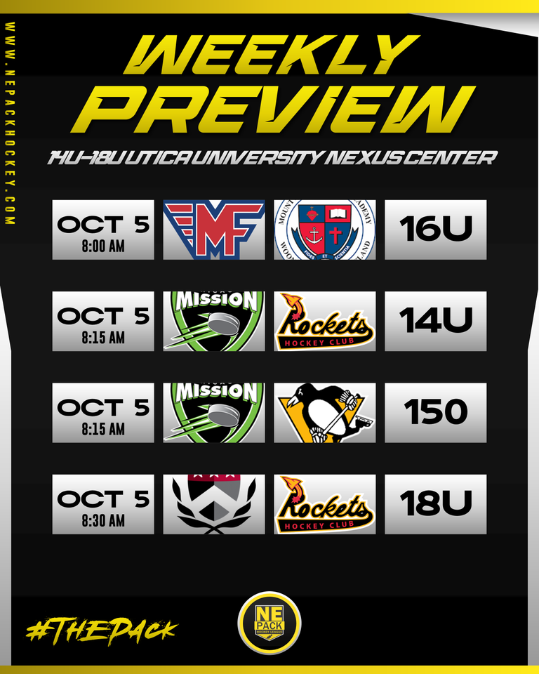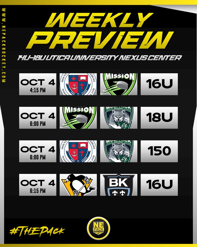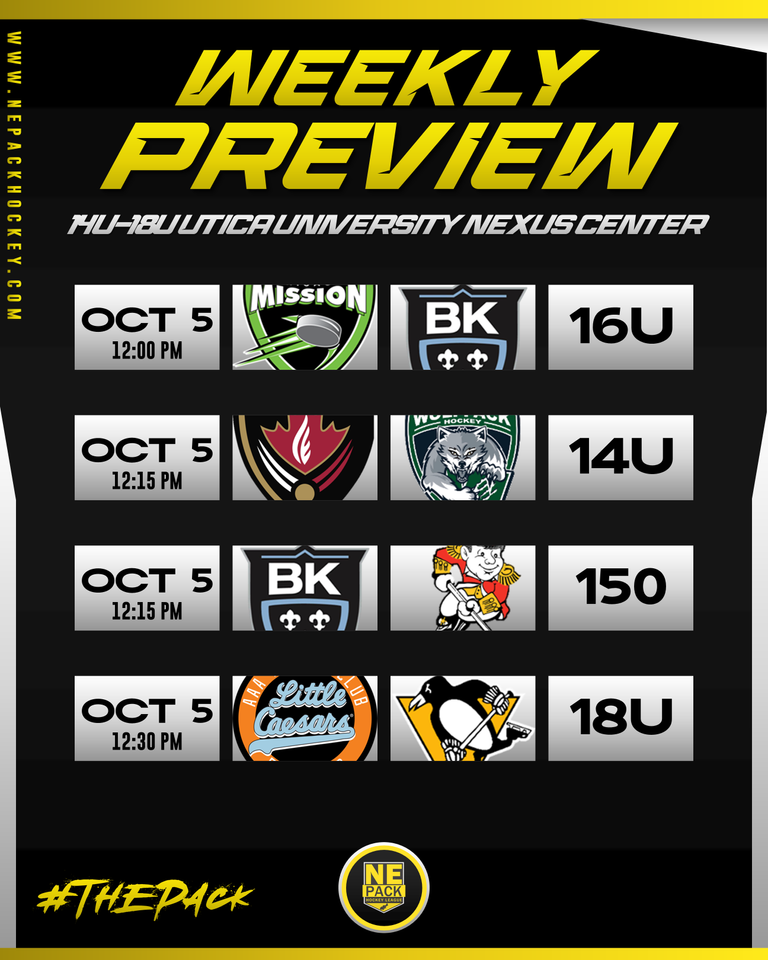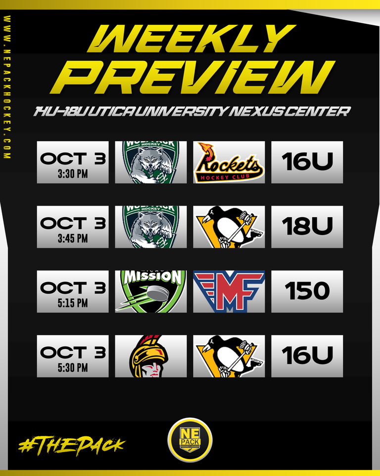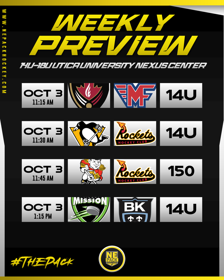 The Northeast Pack Hockey League is excited to host our showcase at Utica University Nexus Center on October 3-5,2025. The best of luck to all teams!