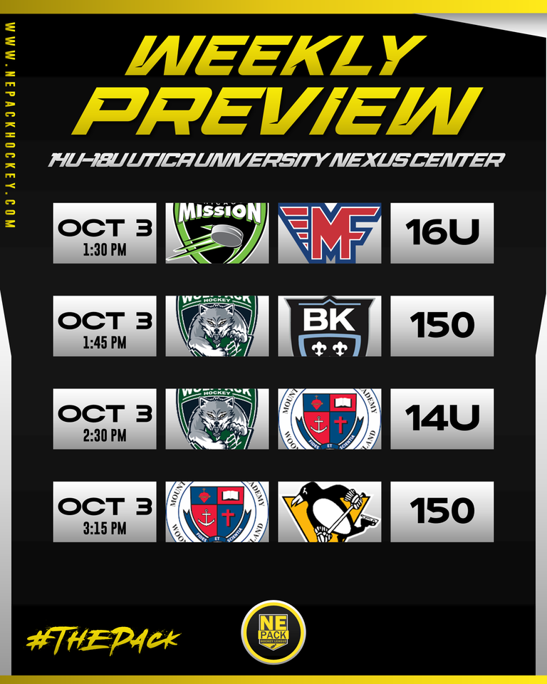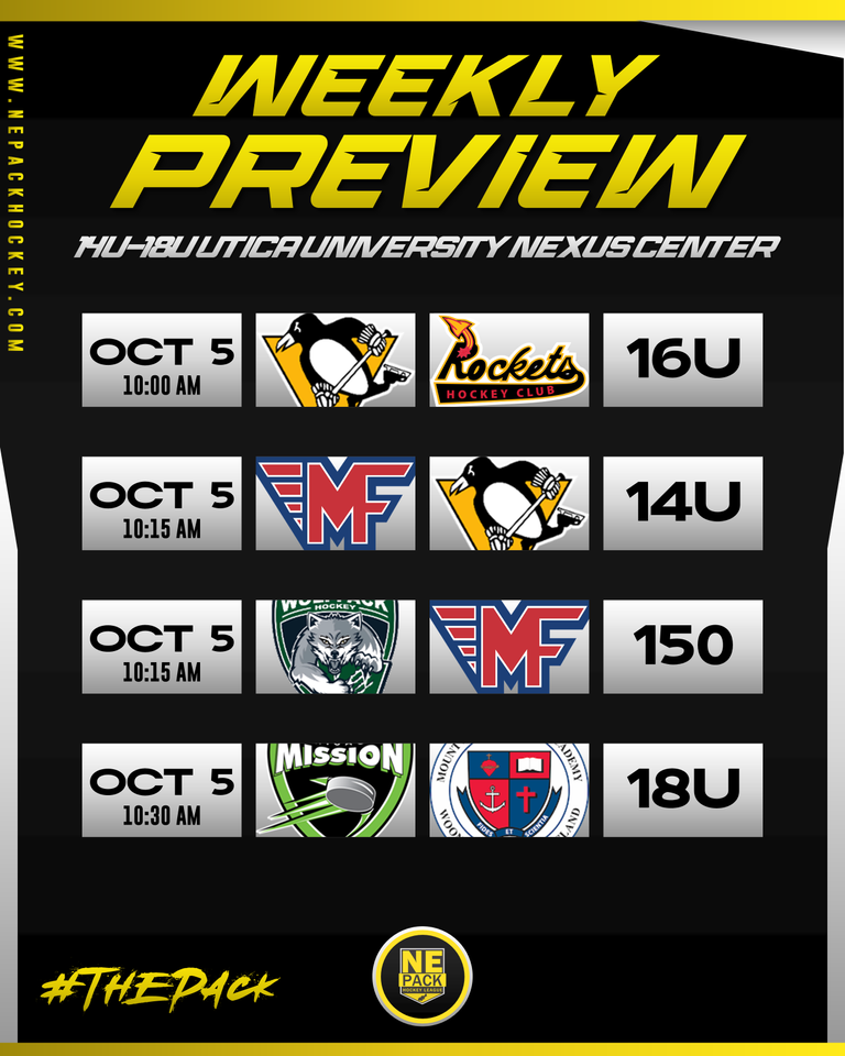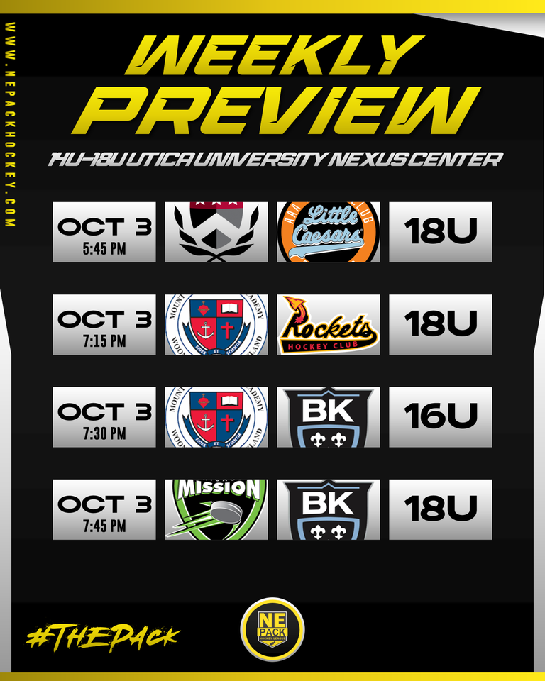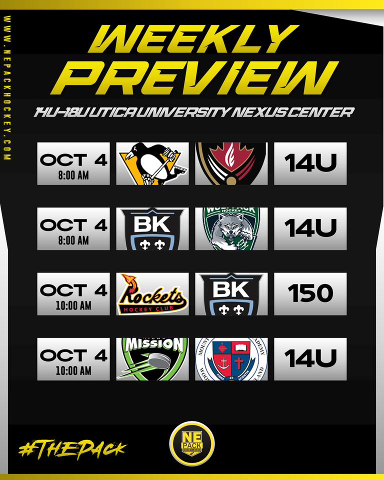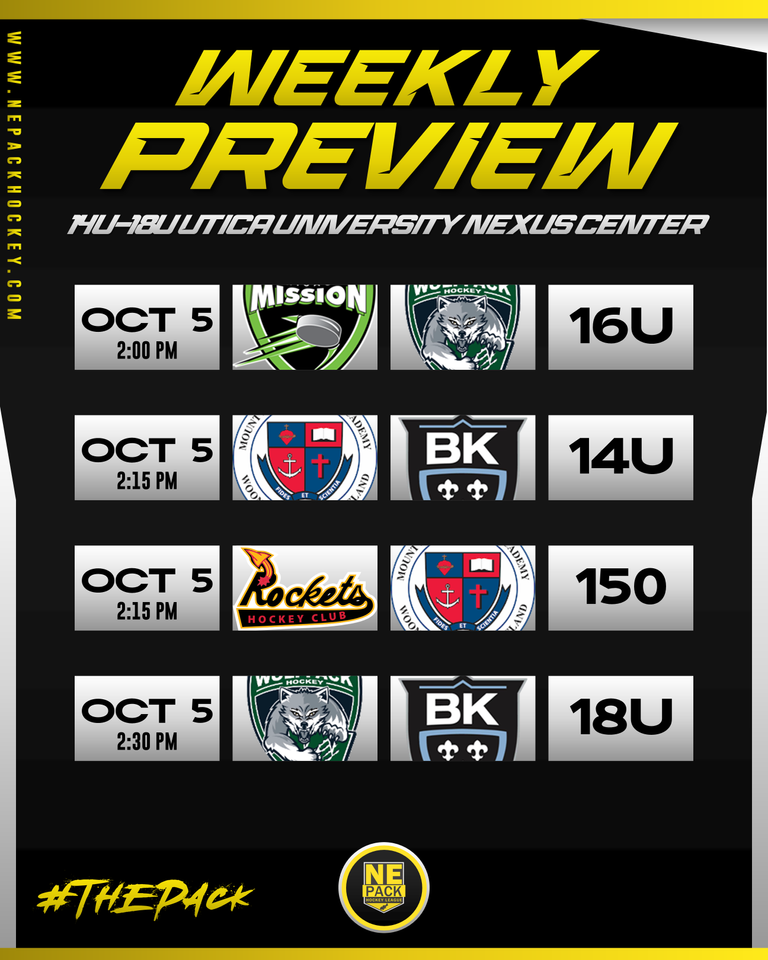 The Northeast Pack Hockey League is excited to host our showcase at Utica University Nexus Center on October 3-5,2025. The best of luck to all teams!