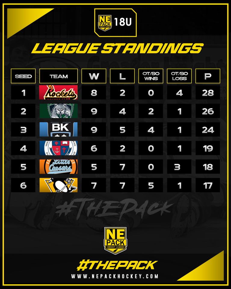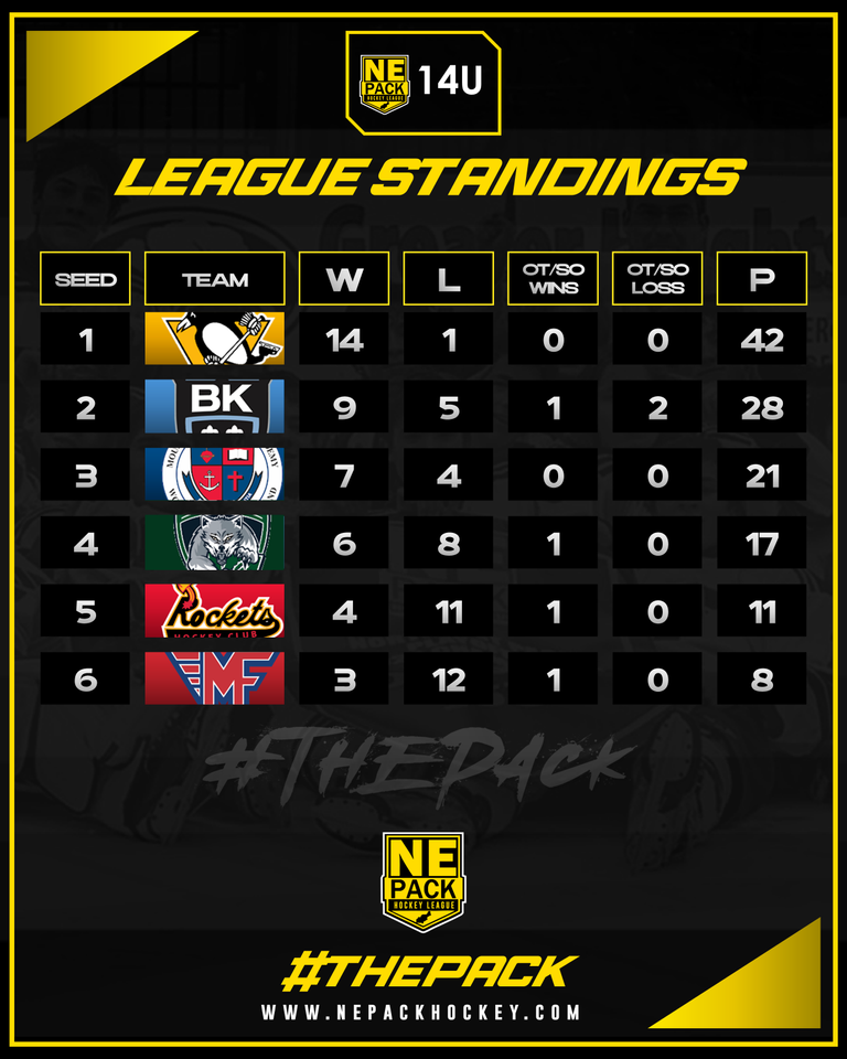 The Northeast Pack Hockey League playoffs will be held in Utica, NY on February 6-8, 2026.