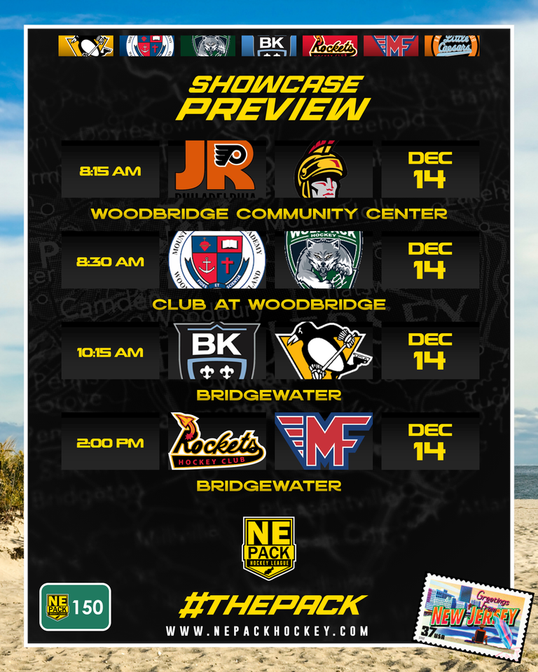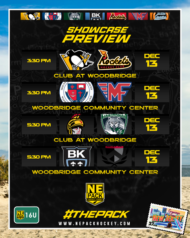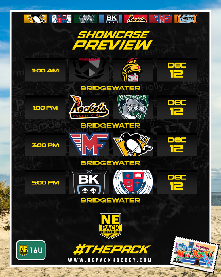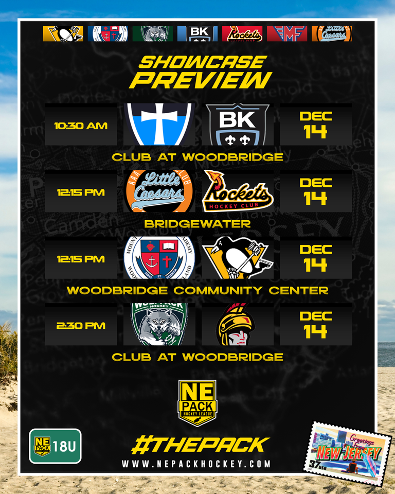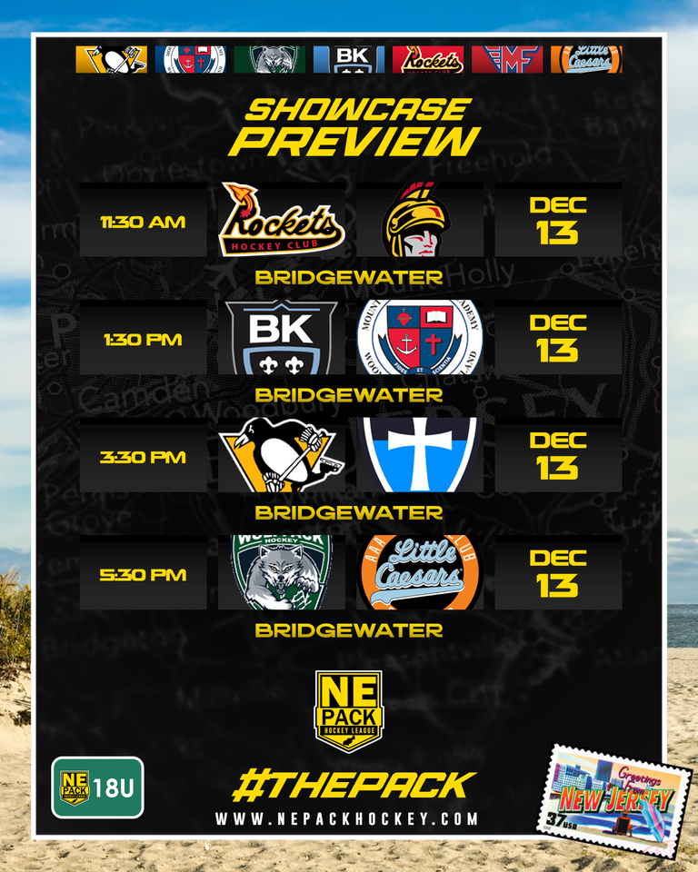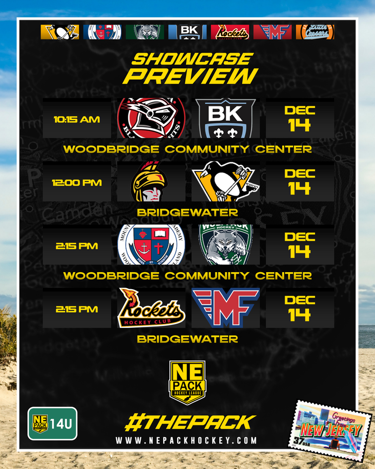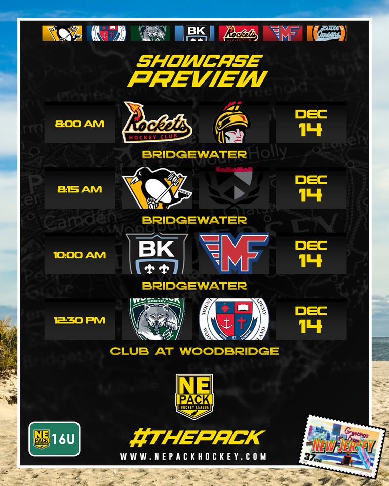 The Northeast Pack Hockey League will host a league showcase in New Jersey on December 12-14, 2025 for ages 13U-18U. This will be the first and only event of the season that has the 13U (2012) age division participating. We are excited to host the 13U teams as they are the future of the Northeast Pack Hockey League! Thank you to the New Jersey Rockets and the Wolfpack Hockey Club for hosting this showcase. Please see the slides below for the weekend preview. Best of luck to all teams participating.