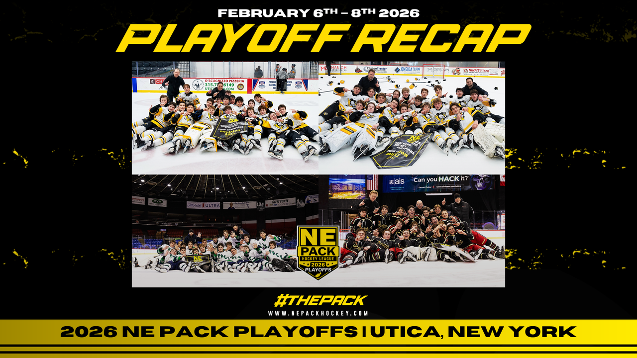 The Northeast Pack Hockey League Playoffs were held in Utica, NY on February 6-8, 2026. Congratulations to our 2025-2026 Northeast Pack Hockey League Champions. What a great accomplishment and memory for the organizations, coaches, players and families. The best of luck to all of our Northeast Pack Hockey League teams with the rest of your season.